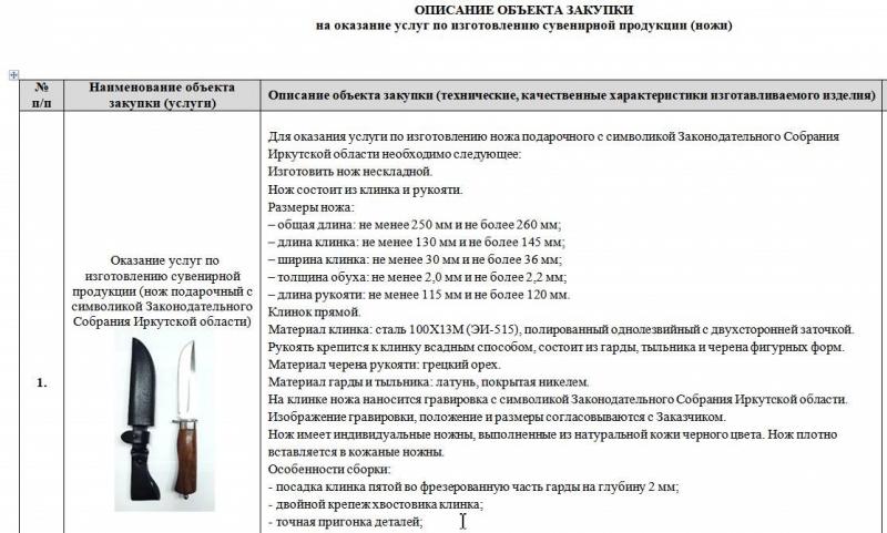 Каким-то самым брутальным заточили 20 ножей (опять же, с гравировкой фирменного логотипа) в ножнах из натуральной кожи, заказанных у Златоустовского завода оружейных специализированных сталей за 191 тысячу рублей. Чтобы, значит, решительнее резать лишние расходы.
