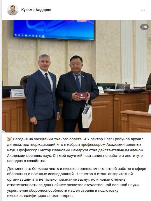 А вот аксакал парламентской жизни Прибайкалья Кузьма Алдаров пусть так и не стал до сих пор депутатом Госдумы, но уже профессор.