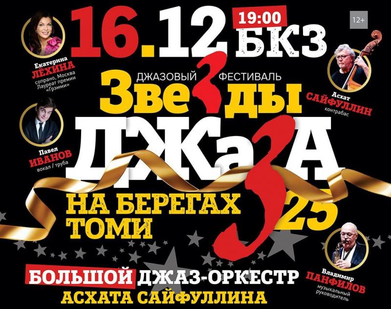 Джазовый фестиваль открылся 14 декабря: концерты прошли в селе Бакчар и в Северске. Впервые перед зрителями из этих муниципальных образований выступили Большой джаз-оркестр Асхата Сайфуллина и солисты из Москвы: лауреат премии Грэмми Екатерина Лёхина (сопрано) и Павел Иванов (баритон).