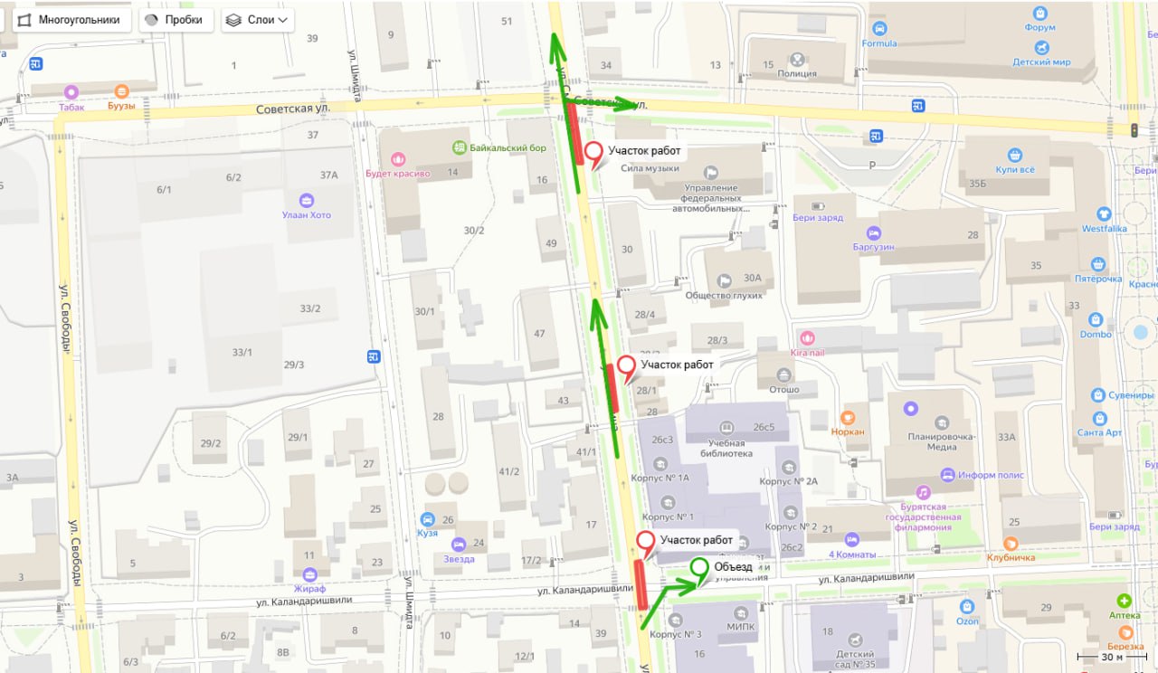 С 22 декабря по 3 февраля в Улан-Удэ ограничат движение автотранспорта на четырех участках улицы Смолина в сторону Советской. Все из-за реконструкции водопроводных сетей. Об этом сообщает городская администрация.