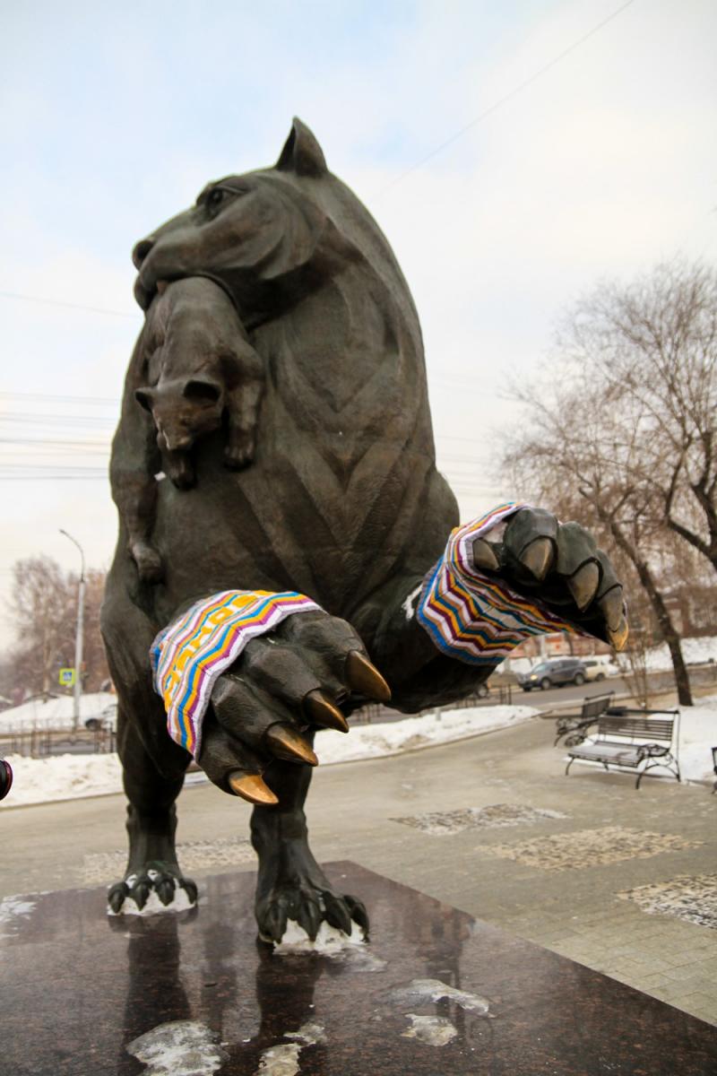 Иркутяне регулярно пытаются утеплить Бабра. В 2025-м - шарфом, а это в 2016-м