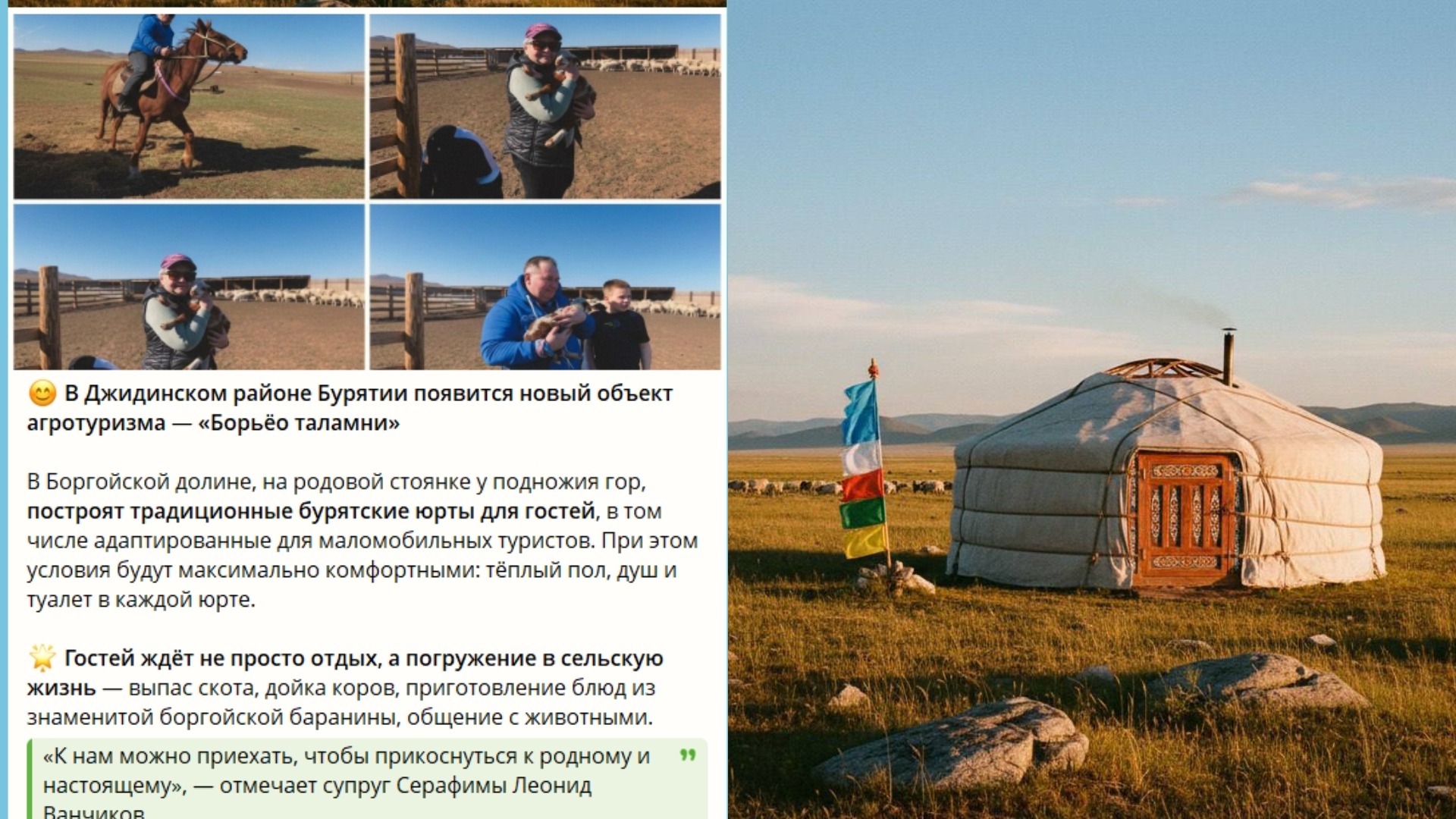 «В Боргойской долине, на родовой стоянке у подножия гор, построят традиционные бурятские юрты для гостей, в том числе адаптированные для маломобильных туристов. При этом условия будут максимально комфортными: тёплый пол, душ и туалет в каждой юрте», — сообщается в пресс-релизе правительства Бурятии.
