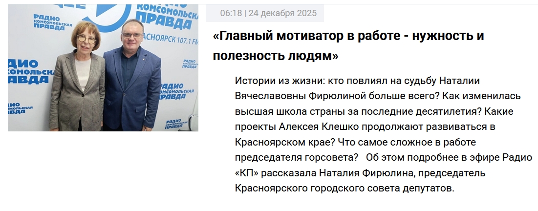 Также «Красноярскгейт» уточняет, что независимо от выхода с больничного, для восстановления придётся приложить усилия. И намекает на то, что ни о какой ротации Фирюлиной речи не идёт. Ведь момент для этого неподходящий. А ещё подмечает, что доработать 75-летней Наталье Вячеславовне в текущем статусе до конца полномочий будет крайне проблематично.