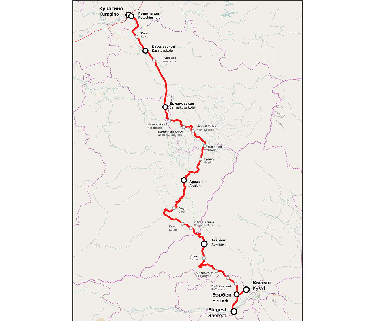История проекта началась в 2011 году: тогда Владимир Путин забил «золотой костыль» на первом километре. Первый километр около города Кызыл так и остался первым и единственным.