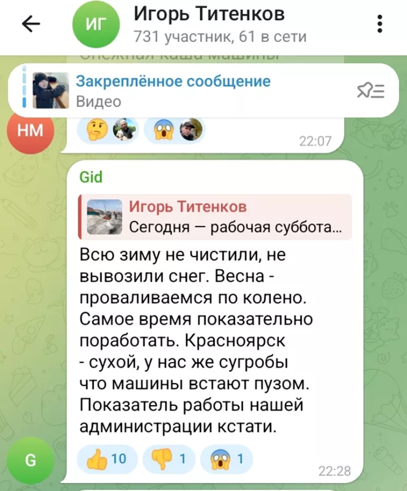 Не менее традиционной была и реакция местных жителей. После публикации ролика в телеграм-канале главы округа люди, несмотря на недозаблокированный статус сервиса, оставили многочисленные отзывы и «теплые пожелания» в адрес Игоря Петровича.